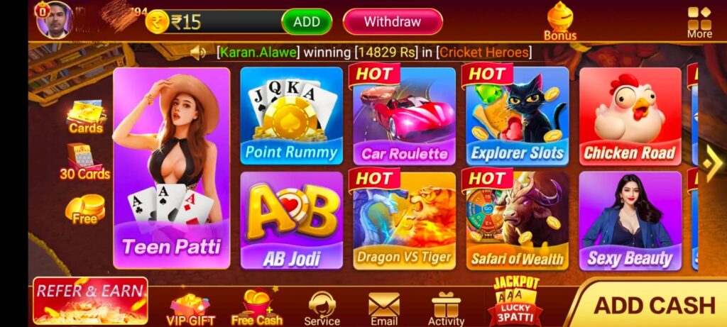 - Multiple Game Modes: Choose from Classic, Joker, Muflis, AK47, and other variations of Teen Patti